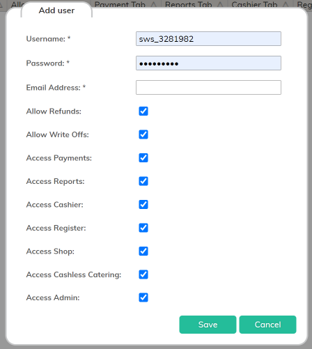 2) Click Add, enter a unique username identifiable as for SchoolWorkSpace e.g. your school name or number with an sws_ prefix. With a nice strong password.